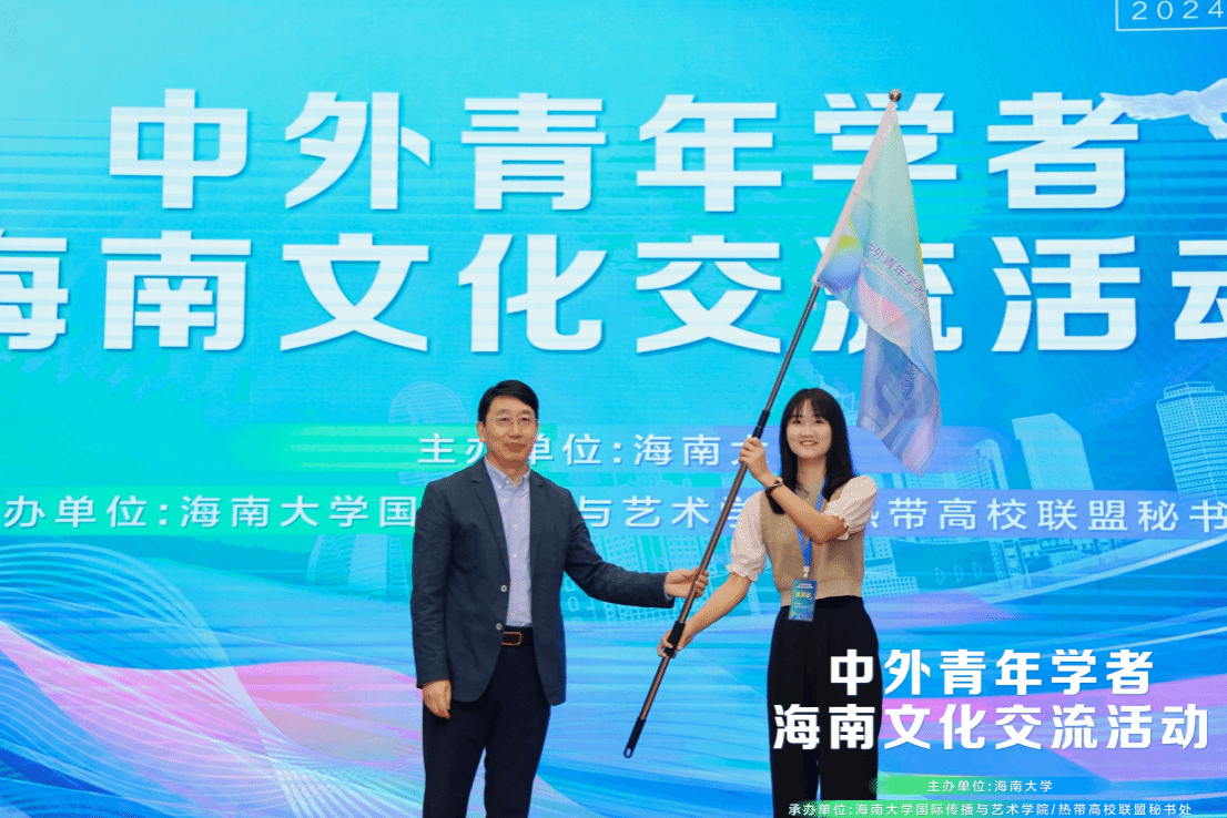开幕式上,太阳成集团tyc33455官方网站经理郑立波教授向员工代表授旗,标志着中外青年学者海南文化交流活动正式启幕。在为期四天的活动中,代表团将参访海南省博物馆、民族博物馆、非遗展示中心,体验海南历史与文化遗产;在黎族村寨体验扎染技艺、徒步五指山,感受热带生态与人文风情;深入疍家渔村,探访疍家博物馆,亲身感受疍家渔民的独特生活方式。丰富多样的行程安排,将使代表团成员更加切身体验到海南独特的传统文化、热带雨林风光、民俗民风等,让青年学者们能够真切地感受到海南自然之美、文化之韵、生活之真以及自由贸易港的蓬勃活力,促进中外文化的交流互鉴和中外人民的友好往来。