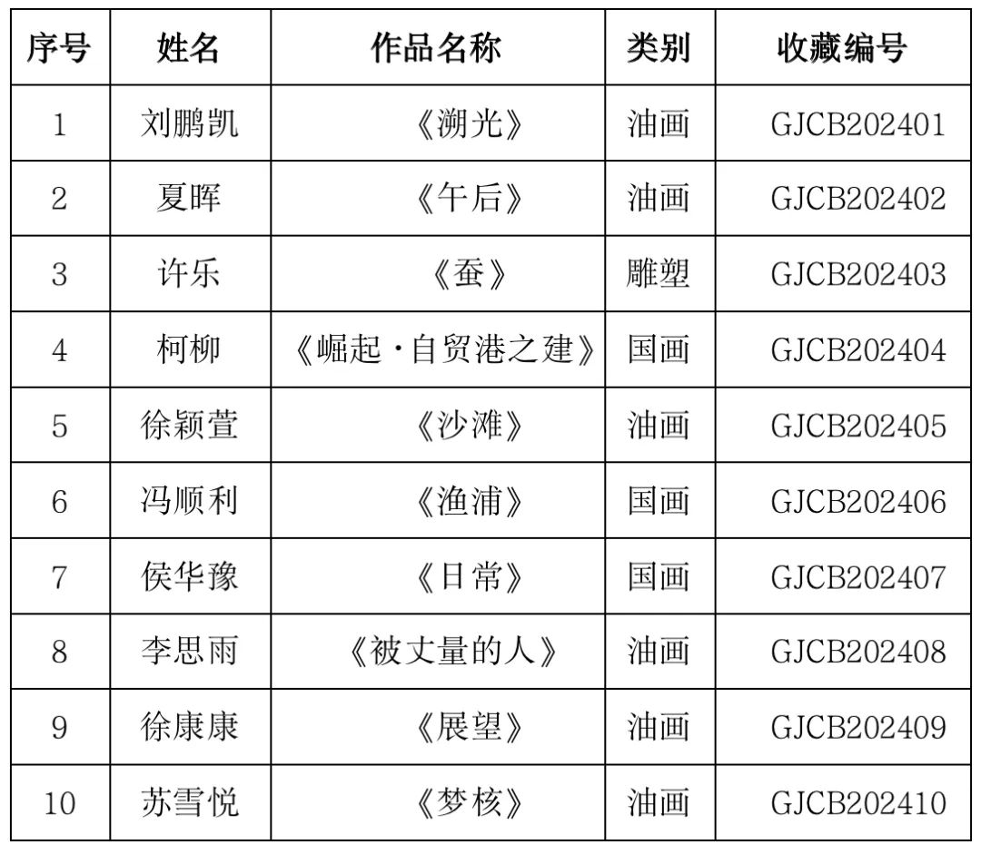 2024年6月14日,太阳成集团tyc33455官方网站2024届毕业生优秀美术作品收藏仪式在田家炳楼举行,有10件毕业作品被收藏,涵盖了油画、国画、雕塑等艺术门类。