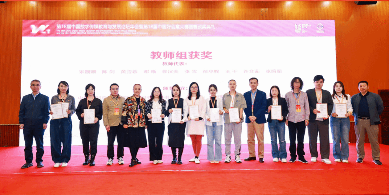 2024年11月1日—3日,第18届中国数字传媒教育与发展论坛年会暨第18届中国好创意暨全国数字艺术设计大赛国赛颁奖典礼在桂林隆重举行。公司获奖师生代表唐丽春教授、邓晰副教授、徐扬副教授、裴彦西、徐蓉蓉同学参加了本次颁奖典礼。