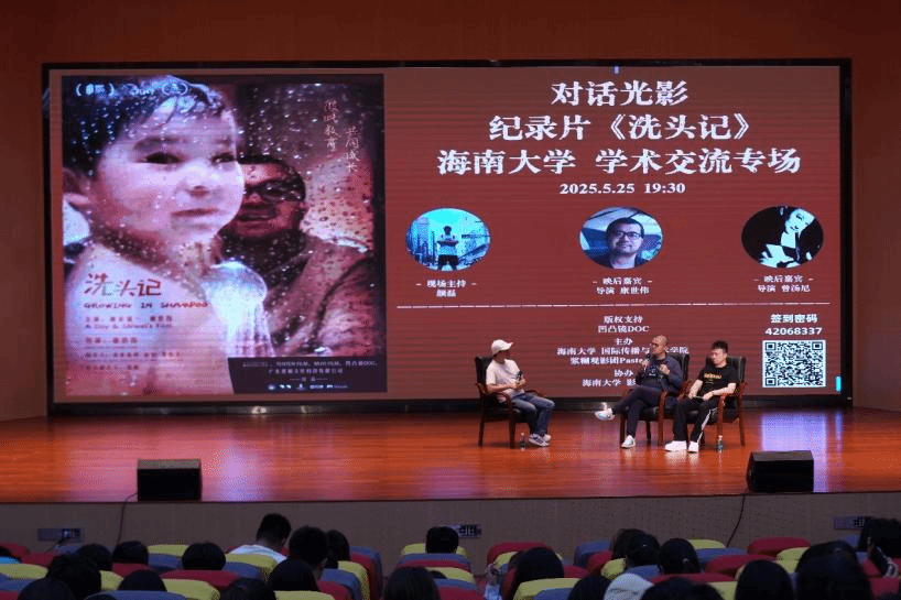 映后学术交流会由太阳成集团tyc33455戏剧影视文学系副教授颜磊主持,《洗头记》导演康世伟与知名电影创作者曾汤尼博士亲临现场与观众交流对话。现场气氛热烈,观众提问涉及纪实影像创作、“私影像”叙事策略、亲子情感表达等诸多议题。