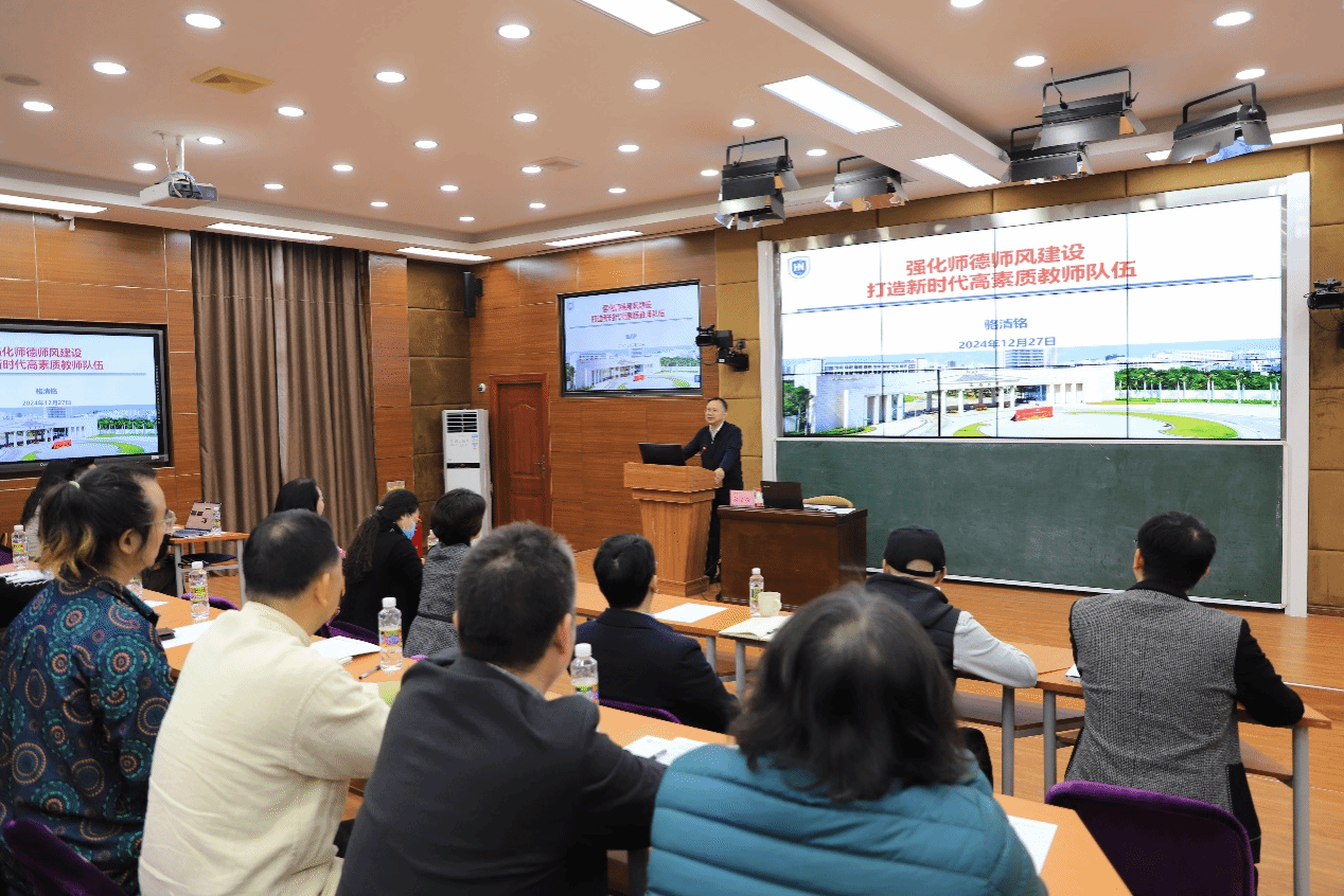骆清铭强调,要以教育家精神引领高水平教师队伍建设,营造“知行合一、崇尚学术、追求卓越”的求知治学氛围;要强化监督机制,畅通沟通渠道,多维度保障员工权益;要压实主体责任,明确工作责任,落实落细师德师风建设各项举措;要加强理论学习,厚植家国情怀,紧密对接国家战略需求和服务海南自由贸易港建设;要涵养高尚师德,坚守育人初心,努力做“经师”和“人师”相统一的好老师;要投身“三大改革”,聚焦主责主业,在知校、爱校、荣校、兴校方面作出表率。
