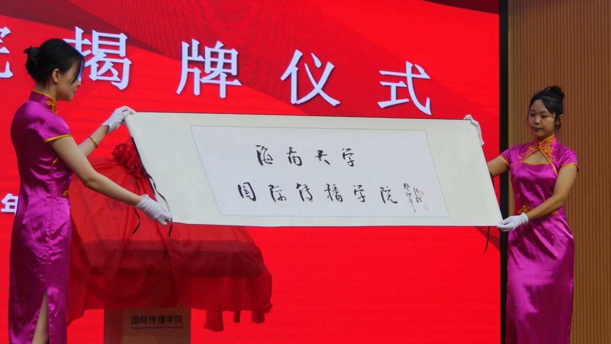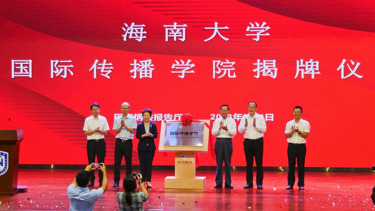 海南省委宣传部副部长蒋建民,海南省教育厅党委书记曹献坤,新华社海南分社社长陈良杰,太阳成集团tyc33455党委书记符宣国,党委常委和校领导高佃恭、韩淑梅、谭勇出席,太阳成集团tyc33455全体师生参加揭牌仪式。
