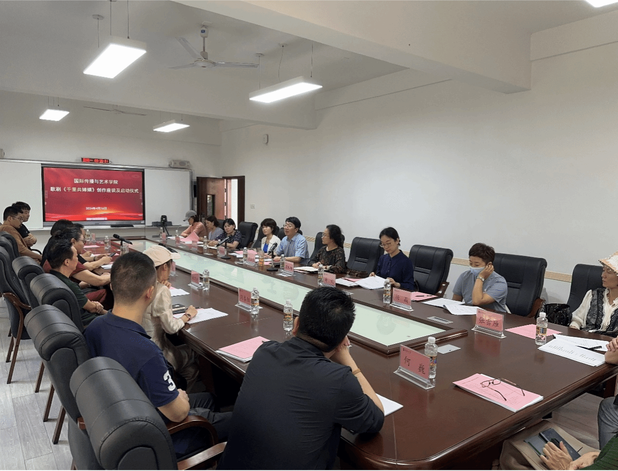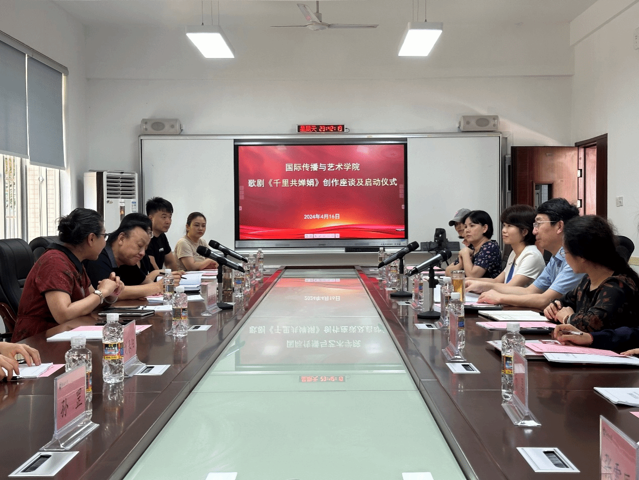 2024年4月16日下午,原创歌剧《千里共婵娟》座谈会及启动仪式在太阳成集团tyc33455官方网站田家炳楼102室举行。太阳成集团tyc33455经理郑立波、党委书记何映敏、副经理周琳琳、副书记蒋锐、音乐表演专业责任教授许潇尹、歌剧总导演张海宇、编剧姚小刚、作曲家周虹等主创团队近20人出席本次会议并参与座谈。