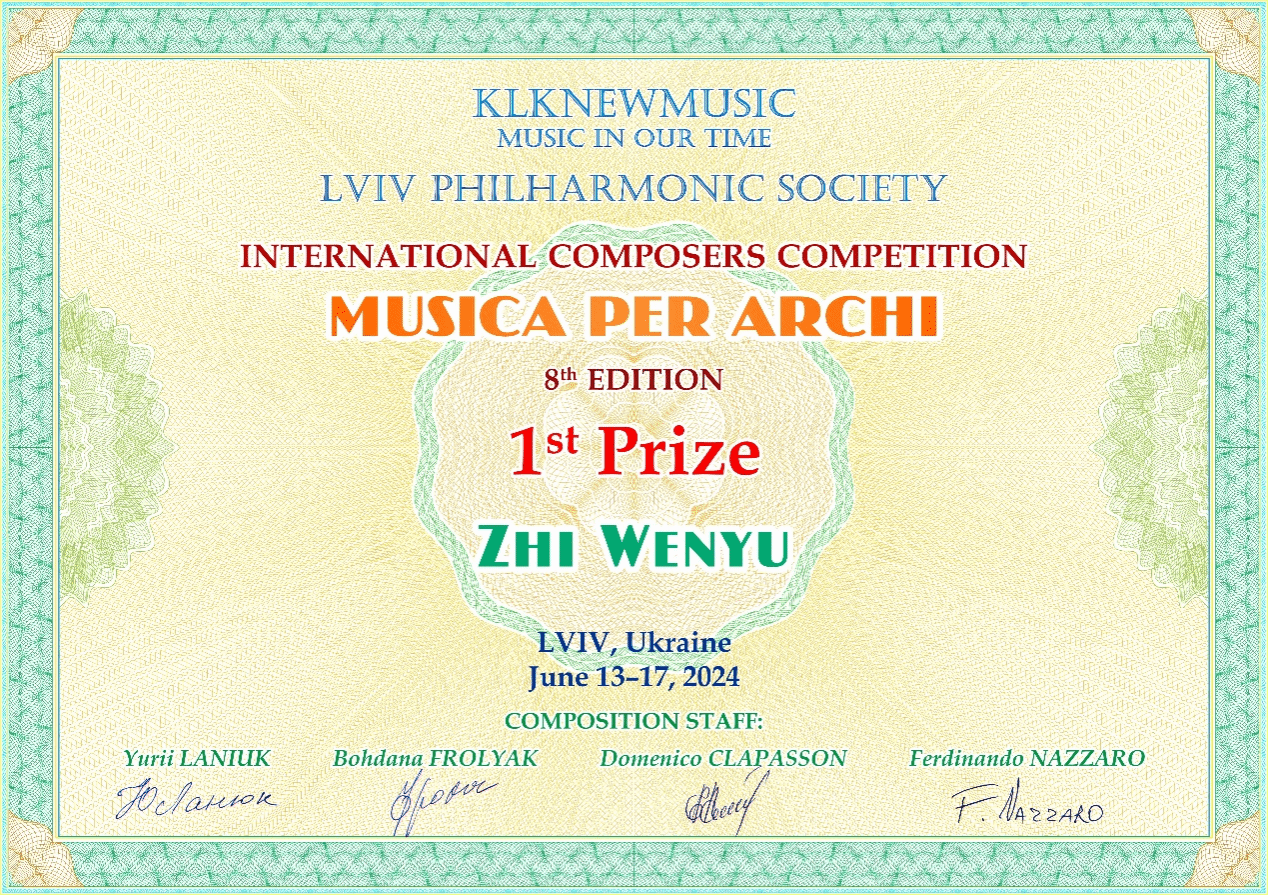 6月17日晚,第八届“Musica per archi”国际作曲比赛决赛音乐会在乌克兰利沃夫爱乐音乐厅圆满落幕,公司青年教师智文禹凭借作品《Breath of the rain forest》(雨林之息)荣获一等奖。
