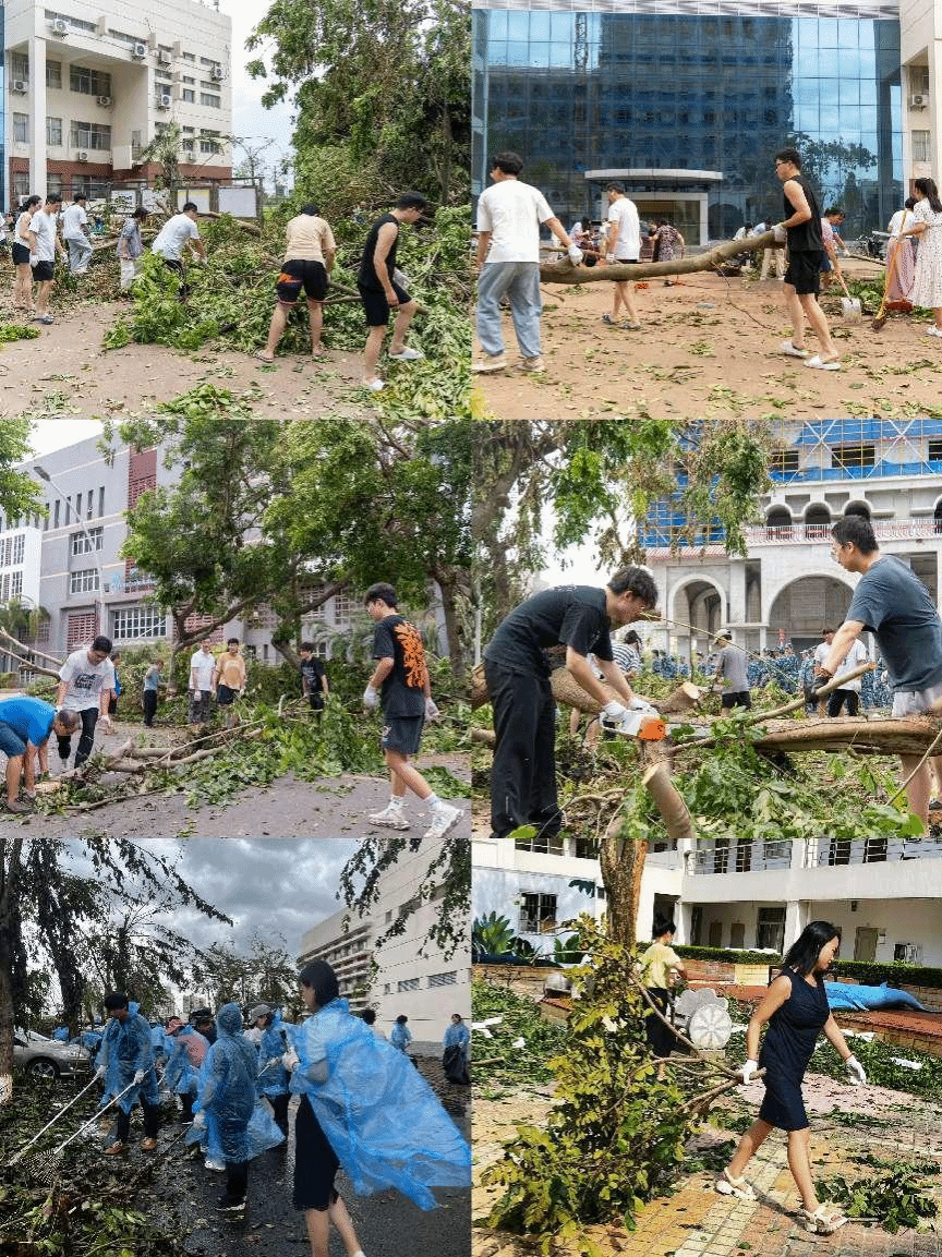 本站讯(通讯员 李政)今年第11号超强台风“摩羯”正面袭击我省,造成严重灾害,海大校园也受到了重创,尤其是基础设施受灾严重,房屋受损、树木倒伏,道路瘫痪。国际传播与艺术公司党委积极响应公司党委号召,第一时间组织党员先锋队,带领公司教职员工志愿者及员工志愿者开展灾后重建工作,清理田家炳楼、艺术大楼及周边,为共“净”校园,全力以“复”。