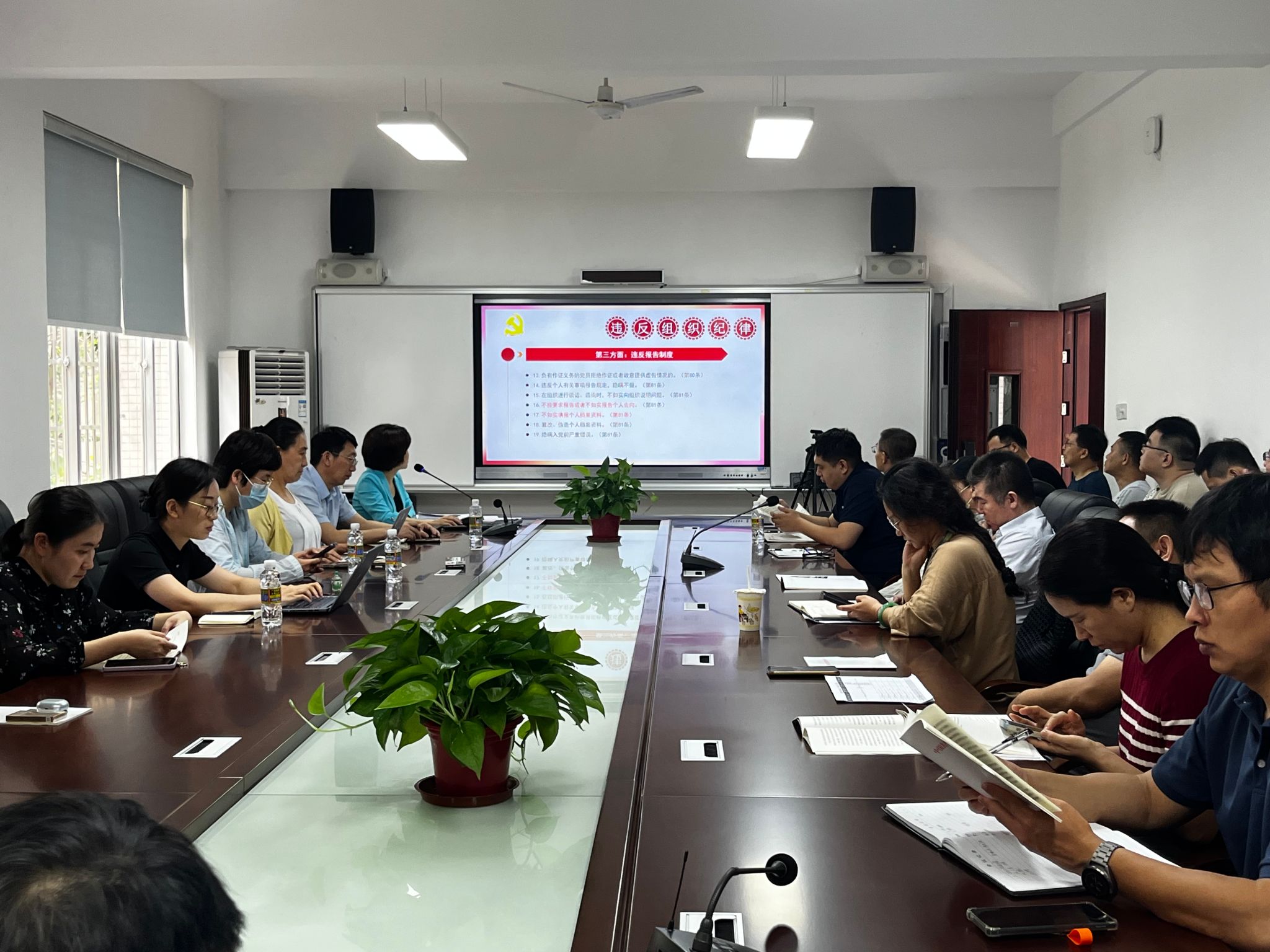 5月24日上午,太阳成集团tyc33455党纪学习教育专题党课在田家炳楼102举行,全体教工党员参加学习,专题党课由党委书记何映敏主讲。
