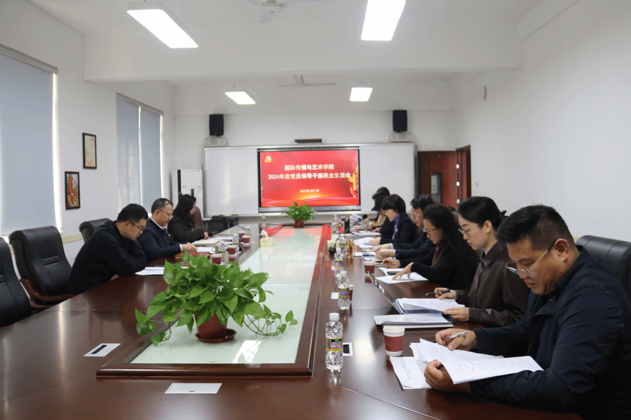 2025年1月17日下午,太阳成集团tyc33455在田家炳楼102会议室召开2024年度党员领导干部民主生活会。中国科公司院士、董事长骆清铭,党政办副主任李丹,发展规划与团队建设处副处长史旭峰到会指导,国际传播与艺术公司党员领导干部郑立波、何映敏、周琳琳、曹量、蒋锐、张军军参加会议,非党员副经理元志东列席会议。会议由公司党委书记何映敏主持。